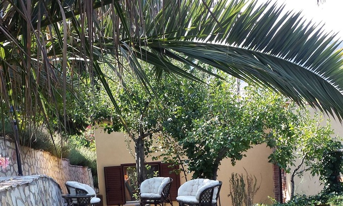 Country house, recently renovated, is on two levels, with two bedrooms (one double, one with two bunk beds), two bathrooms (one with bath, one with shower and washing machine), a large living room with wood stove and two futon sofa beds, a small bedroom with a single sofa bed and a fully equipped kitchen with electric oven and microwave. Our guests will find everything they need, the house is fully furnished, independent and equipped with every comfort. There is also a terrace covered by a wooden roof with a large table that can accommodate all guests, and a relaxation area with TV, sofas and chairs, outdoor kitchen with barbecue and wood oven area. It is part of the property also a lawn where you can admire the spectacular sunset and a garden of hazelnuts trees.