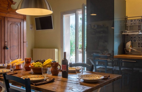 Villino Bruna is surrounded by a 2000 sq m fenced garden, bordered by luxuriant hedges guaranteeing privacy but not depriving you of the view of the beautiful hilly landscape of Bertinoro to the north of the property. In front of the automatic entrance gate to the property is a large parking area, conveniently located in the immediate vicinity of the house entrance. From here you are welcomed by a well-kept garden full of flower beds, flowering plants and bushes of Mediterranean herbs. On the south side of the villa is the shady and spacious portico which communicates with the living area, equipped for unforgettable meals and a brick barbecue.Please notice that photos are taken in spring, therefore flower blossoming, and the colours of the gardens' grass could be different at the moment of your arrival at the villa.