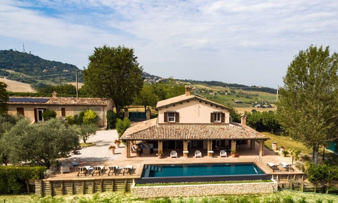 Best-rates for the Bertinoro villa starts from $1,058 per night with includes Pet Friendly, Security/Safety, Kitchen, Air Conditioner, TV, Private Pool, Guest Services, Barbecue/Outdoor Cooking, Internet, Parking, Pool, Child Friendly, Bedding/Linens, Fireplace/Heating, Laundry with all other amenities. Perfect for Weddings is committed to ensuring every guest experiences a comfortable and extraordinary stay, whether planning a romantic getaway, a honeymoon, a pet-friendly stay, or celebrating with the entire wedding party.