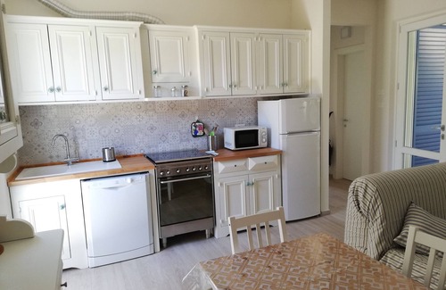 Quiet villa in an excellent position to reach the center and the beach, with private garden and parking. Composed of a double room where you can add a bunk bed, a double room, a living room with kitchenette and a bathroom. Also accompanied by a shower 'en plein air'. Equipped with dishwasher, washing machine, electric oven and microwave.