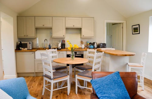 Amenities: Gas central heating. Electric oven and hob, microwave, fridge, freezer, washing machine, and dishwasher. Smart TV, WiFi, and a selection of books. Fuel and power inc. in rent. Bed linen and towels inc. in rent. Off-road parking for 2 cars. Garden with lawn and furniture. Two well-behaved pets welcome. Sorry, no smoking. Shop 2.4 miles, pub 0.8 miles