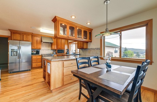 This spacious farmhouse, situated in the heart of mountain vistas and rolling hills, is the ideal place to gather with your loved ones for a memorable getaway. The stunning 4-bedroom, 3-bath vacation rental invites you and your crew to sip vino on the deck and relax in the hot tub. You'll also be a short drive from fishing, hunting, crabbing, art events, and more! This Oregon hidden gem awaits!