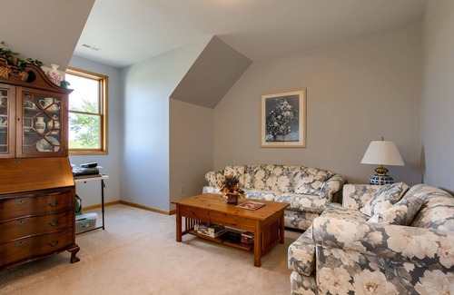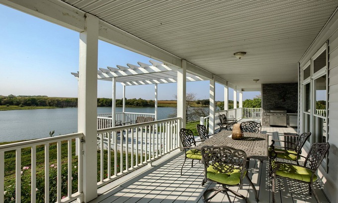 This private residential estate, known as Front Proch Vineyards, consists of 25 acres overlooking a serene lake, grapevines & woodlands. Located 1 hour south of Lincoln, NE this beautiful property has much to offer. For the person who loves the outdoors, there’s prime fishing, boating, photographing, walking paths, gardens, & tranquil beauty everywhere. The main house has 3500 sqft with a large wraparound porch. It has 4 bedrooms, 3 baths, an open concept, an updated kitchen, and a first-floor primary suite.
