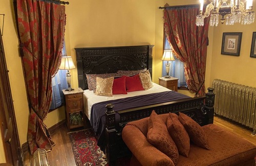 Vineyard Mansion - Benjamin Room - King Bed has 1 Bedroom , 1 Bathroom, and max occupancy of 2 people. The minimum rental for this property is 1 nights, but this can change depending on the season you plan on staying. Previous guests have given good rated it, and VRBO labeled it a top-rated Bed & Breakfast because of the excellent services rendered by the owner or manager of this Bed & Breakfast, and has consistently provided great experiences for their guests. Most families or guests that use it recommend it to their friends and some of them are repeat guests. Bed & Breakfast has a friendly neighborhood, and the St. Joseph has interesting places to visit. If you want to learn more about the Bed & Breakfast in St. Joseph, such as places to visit and things to do nearby, you can check below to learn more.