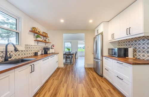 Welcome to Vineyard Views, a modern farmhouse nestled on half an acre in Niagara wine country! Renovated in 2022, this raised bungalow is a quick five minute drive to Old Town NOTL.