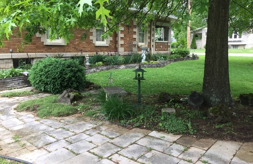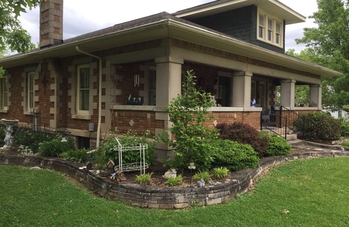 Bedford, IN - Vintage 1920s craftsman bungalow lovingly restored with oak floors, working fireplace, iron soaking tub and walk-in tile shower, patio, large yard and double wide porch with sweetheart swings. Easy Access to 36, Old Milwaukee Hiking and pet walking trail 1 block from home. Lake Monroe, Spring Mill, Bloomington / Indiana University all easy commutes. Gas heat. Central air. Fully quipped kitchen. In the Capital Heights Safe family neighborhood with walking sidewalks and less than 1/4 mile from groceries, walmart and shopping mall. Charming period detail. Less than 1/2 mile to US 50 and 36, groceries, walmart, hospital
