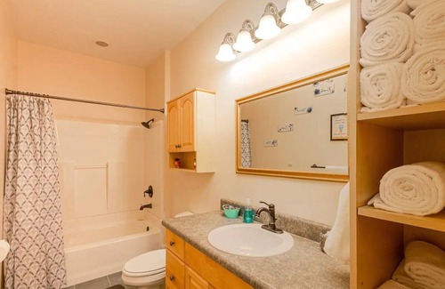 The cozy bedrooms are designed to provide a restful night's sleep, featuring a plush king-sized bed, soft linens, and ample storage for your belongings. The second bedroom has a queen-sized bed and the nearby bathroom offers a combo shower and tub, fresh towels, and essential toiletries. Our fully-equipped kitchen, complete with all the necessary cookware, invites you to create delicious home-cooked meals during your stay. The adjacent dining area offers a delightful space to share meals and conversation with your travel companions.
