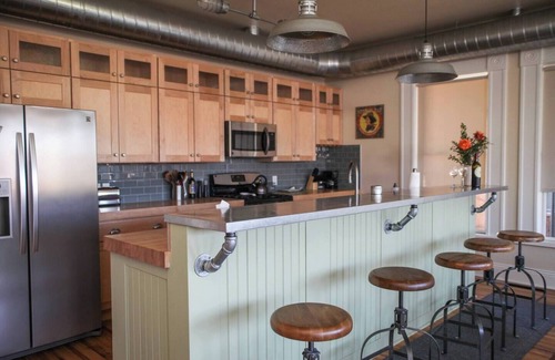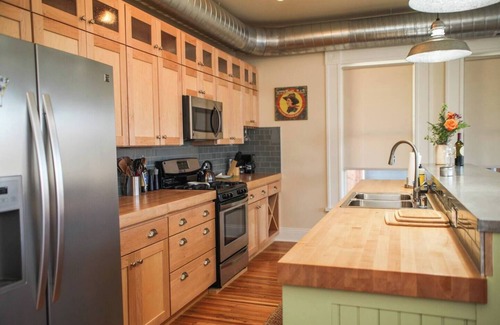 Vintage Luxury Condo is yours to enjoy, including the shared courtyard with the other condos on the Mill House property. Spread out and enjoy throughout the loft and even the elevated deck. Your condo comes with a designated parking space and a permit for the lot on 2nd Street. Free street parking is also available, but please note the 2-hour limit from 9am to 5pm on weekdays. Guests may load and unload in the alley, but parking is not permitted there. Please note, there is no garage access.