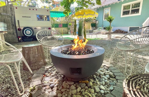 This Vintage Camper is a newly renovated relic in downtown Dover. It sits in a glampyard oasis with outdoor games, loungers, firepit, grill and mood lighting to set off the evenings. There's an outdoor hot water shower– unlike boondocking, this vintage camper rests in a private, fenced-in location with convenient parking. You can walk to Henry Law Park in 6min or at the far stretch any downtown restaurants & shops under 10min.