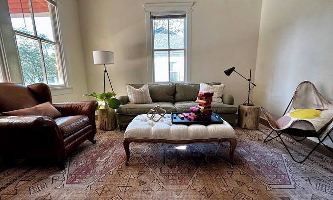 Carefully restored and updated, this 1905 bungalow has all the character you want and the amenities you need. Whip up something delicious in the well appointed kitchen or walk to historic downtown for a microbrew. Soak in the original clawfoot tub or relax by the fire pit table. Carefully selected linens paired with character-filled antiques will be sure to make your stay memorable! Right around the corner from the hospital and a quick drive to the base.