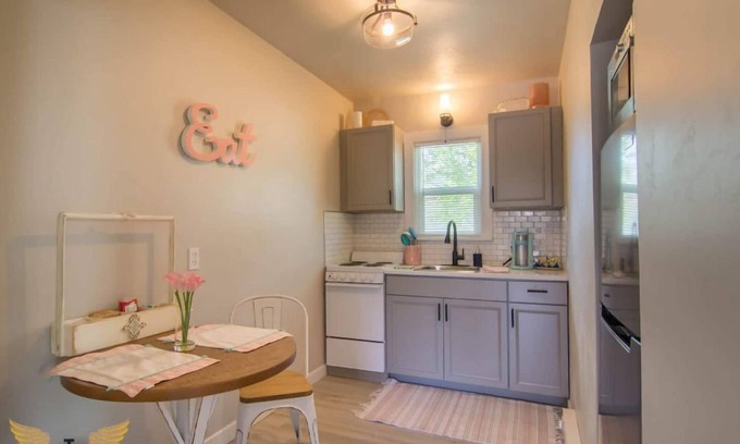 Freshly renovated shabby chic 1bed/1bath villa with full kitchenette & study nook is an ideal place to stay while visiting Twin Falls. There are experiences surrounding this property ready to welcome you. Close to downtown which has become the soul of TF w/ plenty of options of restaurants breweries shopping & coffee shops. Close to plenty of day adventures such as hikes mountains bodies of water & parks. We ask just 1 vehicle in the parking lot street parking is available.