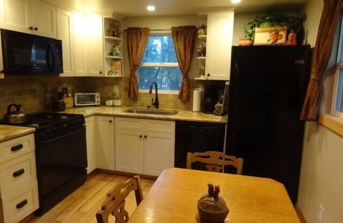 Modern amenities start with the fully stocked, kitchen and bath with granite counters and a washer/dryer. There is a 50 inch 'Smart TV' to turn on for your favorite music , or watch a movie, and enjoy our high speed internet and Apple TV with so many options using your devices. Built in Mini-splits with both AC and heat on each level to click on while you get a warm fire going.