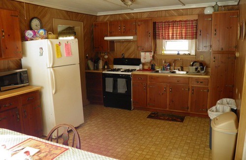 PET FRIENDLY secluded vintage cottage on 10 acres with long private drive. Spacious Living-room with floor to ceiling windows overlooking the water with sleeper futon, Open Kitchen and Dining room, Master Bedroom with queen size sleigh bed, second bedroom with two twin beds.