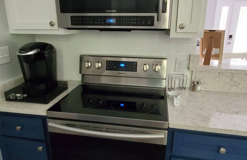NO CLEANING FEE Discover the charm of Virginia's Country Cottage, a welcoming guest house featuring one bedroom, a spacious bathroom with a large shower, a comfortable living room, and a fully equipped kitchen with a generous pantry. Enjoy the lovely front porch and the convenience of a one-car garage. The brand-new patio boasts a gas fire pit for effortless relaxation. Our cottage is thoughtfully designed for handicap accessibility.