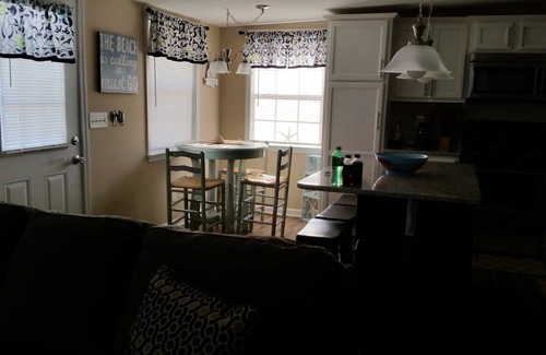 Keywords: Beautiful well maintained house, 2 BR, 1 bath - 'shower only', sleeps (4). Large concrete driveway and relaxing patio area. Spacious open den/kitchen area with new remodel and furnishings.