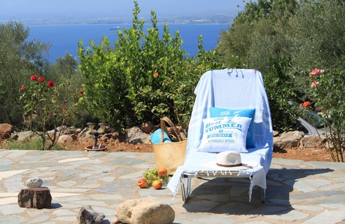 This traditional stone villa was built in 2003. The villa is surrounded with 2000 square meters of natural plot with olive trees and garden. Its one kilometre away from the typical Greek village Megali Mandinia with panoramic view to the Messinian Bay and the impressive mountain Taygetos.