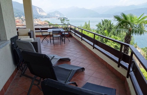 The apartment "Vista Lago" has stunning views of virtually the whole lake and is very romantic. From the front terrace you can see Isola Bella and Isola Madre and Stresa old town and from the other side, you can see Laveno and the eastern side of the lake. This side also overlooks a wonderful sub-tropical garden filled with palms and flowering plants and the sound of birdsong. The terrace is large (30m2) and fully furnished with table and chairs and sunloungers and is partly shaded.