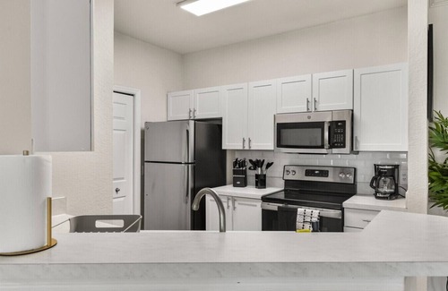 Stay in this stylish 2-bedroom, 2-bathroom apartment with smart TVs in every room and 200+ cable channels in the living room and master bedroom. Enjoy a fully equipped kitchen, in-unit washer & dryer, and fast wifi. Close to Moffitt Cancer Center, USF, Busch Gardens, and Tampa Premium Outlets, this home offers comfort and convenience for any stay. Perfect for families, business travelers, or medical visits. Book now!