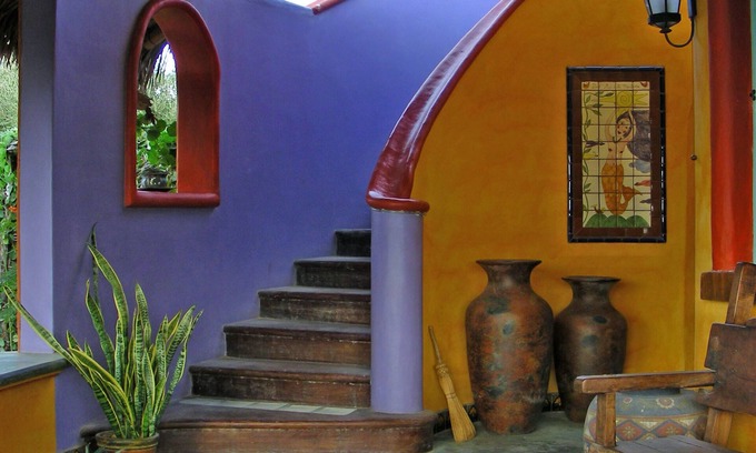 El Encanto's Vista Suite includes a large bedroom with King bed and bathroom with large covered patio with incredible views. Watch the sunrise or the full moon rise from the sea. Keep drinks and snacks in the small refrigerator. Coffee and tea service included. Read or lounge in the comfortable hammocks. We're only a 2 minute walk to the beach, and no more than 5 minute walk to all dive shops and restaurants. You have use of snorkeling gear, beach chairs, umbrellas, and ice chests. Use the outdoor shower to clean salt and sand off after the beach. Watch whales from the patio in season. Includes wonderful attention to detail, original art, native craft, a safe for your valuables and much more. Beautiful handmade palm frond palapa roof. Air conditioning available for an extra charge. There's plenty to do in Cabo Pulmo: diving, snorkeling, swim, hike 20 miles of trails, rent a mountain bike, go sport fishing, whale watching or go on a rancho tour.