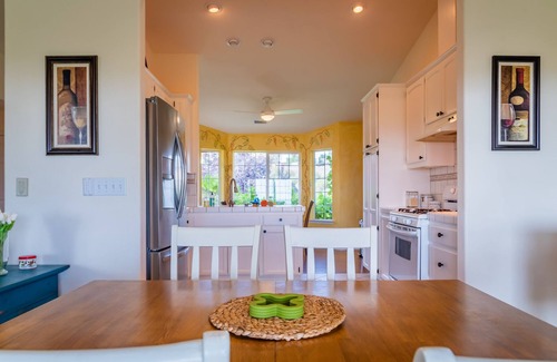This charming three-bedroom, two-bath rental comfortably accommodates up to eight guests, providing ample space for family and friends. The fully furnished 1600 square foot home features elegant decor and cozy furnishings, perfect for unwinding after a day of festivities. Enjoy modern conveniences such as TVs equipped with streaming apps and a fully stocked kitchen. Begin your mornings on the private patio, sipping coffee from our Five Star Coffee Program while soaking in the breathtaking vistas. With easy access to nearby wine tastings at Cinquain Cellars and Bon Niche Cellars, along with olive oil tasting at Terrace Hill, your guests will have plenty of options for delightful activities during their stay.