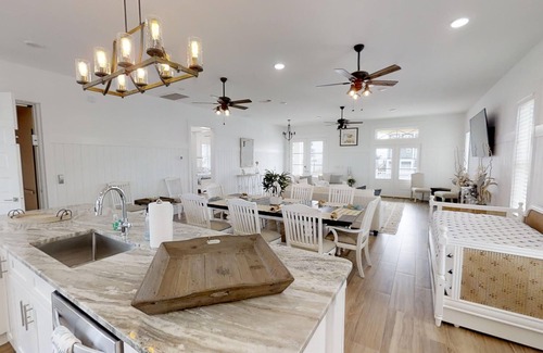 If you're looking for a wedding stay that combines elegance with beachside charm, VITAMIN SEA-SEASIDE NEW CONSTRUCTION VACATION RENTAL - FAMILY FRIENDLY is the perfect choice. Nestled just steps away from Navarre Beach's stunning Gulf waters, this property ensures an unforgettable backdrop for your special day.