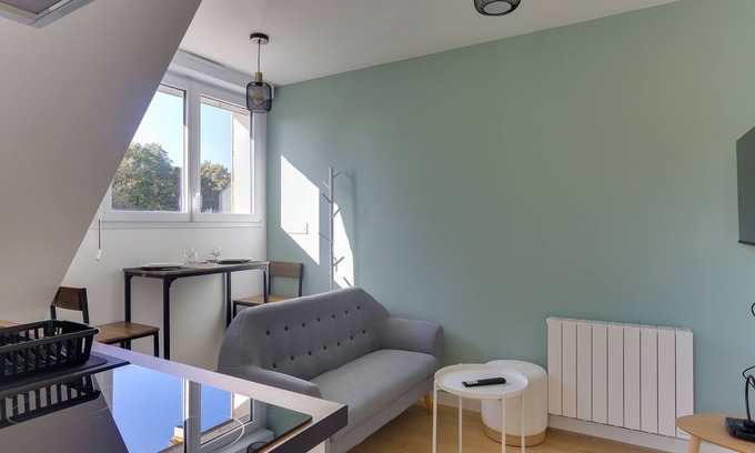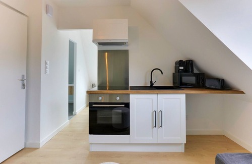 Cocoonr/Book&Pay agency offers this charming 28 m² flat in Bruz can accommodate up to 2 people. Located on the 2nd floor (no lift), it comprises a 20 m² living room with open-plan fitted kitchen, a bedroom, a shower room and a shared garden of around 1,500 m². Wifi (fibre optics), bed linen and towels included, we're waiting for you!