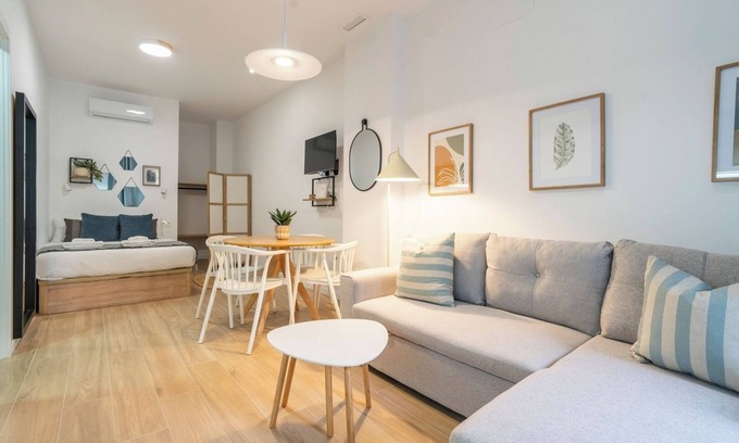 Welcome to your urban oasis in the heart of Valencia! This modern studio on Ausias March Street combines the elegance of Scandinavian design with a warm, inviting touch, perfect for unwinding after a day exploring the city. Its open-plan layout offers a bright space that seamlessly connects the living area with the sleeping area, decorated with natural details and a soft color palette that creates a serene, relaxing atmosphere.