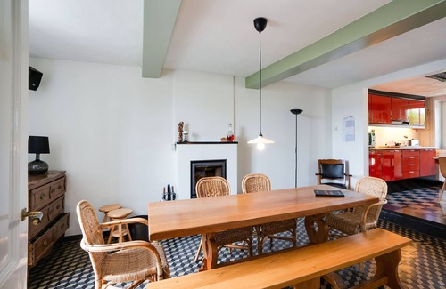 Lose yourself in the beauty of Voeren’s countryside at this grand 8-bedroom mansion, perfect for large families or multiple travel groups of up to 18 guests. Set amidst cherry tree-lined gardens, the home features panoramic terraces, two large kitchens, a pantry, and a conservatory—ideal for shared meals and relaxing moments.
