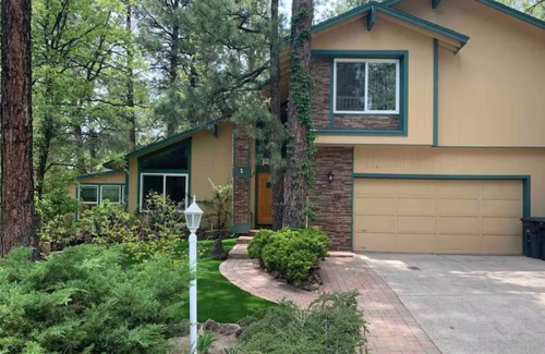 This family home has 4 bedrooms, a loft that sleeps 2 and overlooks the living room but has its own door for privacy. The house can accommodate up to 13 guests. This is a non-smoking home. A private outdoor hot tub in awaits you after a day of skiing, shopping, exploring, or hiking in this beautiful part of the country. Our home has an open kitchen and an outdoor patio with a grill for BBQ's. Located at the base of Mount Elden with lots of Northern Arizona charm!🌲