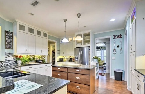 10' In-ground Pool, Jet spa Jacuzzi, Fire-Pit, Fishing, Private Dock and Indoor & Outdoor games, Game Room, Streaming flat screen tv in every room (even game room), Private bath in every bedroom, Mesh Wi-Fi, BBQ Grill, Wet-bar, Gated Yard, Karaoke, Screen Porch, Covered Balcony and much more.