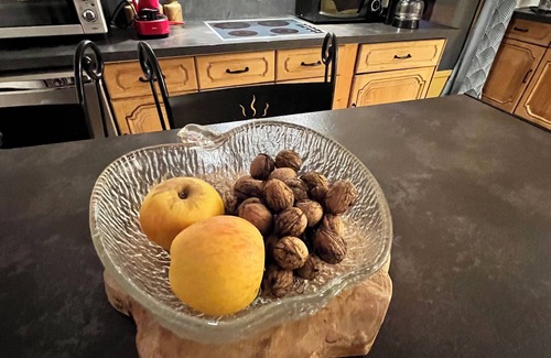 We welcome you on the first floor of a completely renovated old barn that will charm you with its warm and cozy atmosphere. The calm and tranquility of the place invite you to enjoy the garden, relax in the sun after dining outdoors on the terrace. Treat yourself to a coffee break on the furnished balcony that reveals a clear and green panorama of the surrounding countryside. Enjoy the terrace under the balcony, the barbecue, the garden, and the outdoor wooden pool from June to September. Free dedicated parking is available on the street. Motorcycles can be sheltered (maximum 2). Wi-Fi is free.