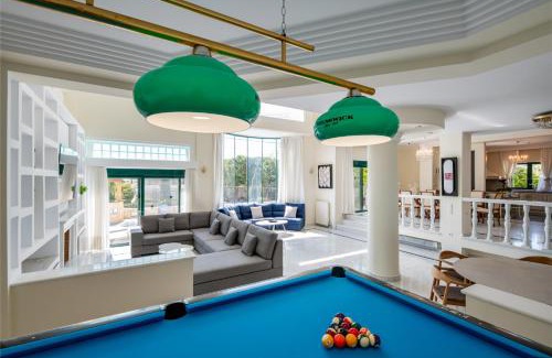 Vouliagmeni Athenian Riviera Villa is a recently renovated villa in Athens where guests can make the most of its outdoor swimming pool, garden, and bar. Among the facilities at this property are an elevator and luggage storage space, along with free Wifi throughout the property. The accommodation provides airport transfers, while a bicycle rental service is also available. Providing a terrace and sea views, the spacious villa includes 6 bedrooms, 3 living rooms, satellite flat-screen TV, an equipped kitchen, and 3 bathrooms with a walk-in shower and a bath. The comfortable, air-conditioned accommodation also comes with soundproofing and a fireplace. This villa is allergy-free and non-smoking. During warmer months, you can make use of the barbecue facilities and eat on the private balcony. You can play billiards at the villa, and the area is popular for cycling and hiking. Popular points of interest near Vouliagmeni Athenian Riviera Villa include Mikro Kavouri Beach, Αkti Vouliagmenis Beach, and Megalo Kavouri Beach. Eleftherios Venizelos Airport is 11 miles away.