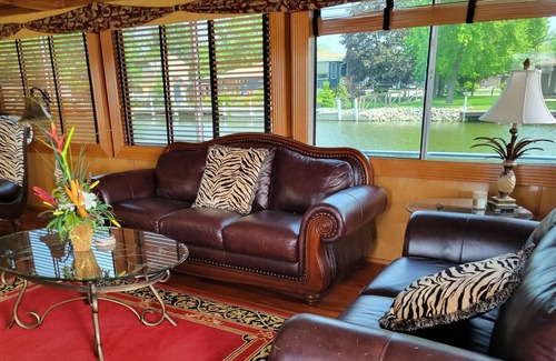 Beautiful 97' houseboat. Features 4 bedrooms, 3 bathrooms, upper deck and a fully outfitted gourmet kitchen.
