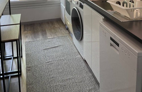 While you're here, you can enjoy all the comforts of home and more, including a refrigerator and an oven, as well as a stovetop and a dishwasher. Other amenities include towels, an electric kettle, kitchenware and utensils, and a toaster.