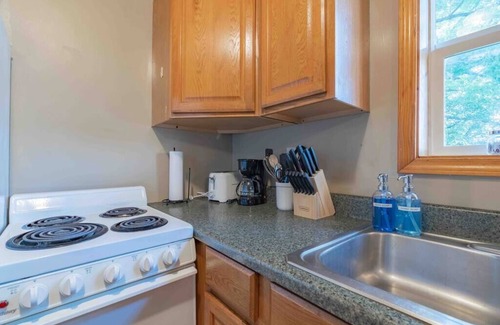 This 1 bed, 1 bath, ground-level apartment can sleep up to 4 people thanks to a pullout couch in the living room. It's located close to downtown but on a quiet road, ensuring plenty of relaxation for your stay.