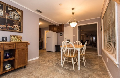 Beautiful large, remodeled house with 3 bedrooms and 2 full bathroom and towel and linens are provided. Washer and dryer are available with the rental also. Kitchen has a stove and 2 ovens, a microwave, dishwasher and refrigerator.