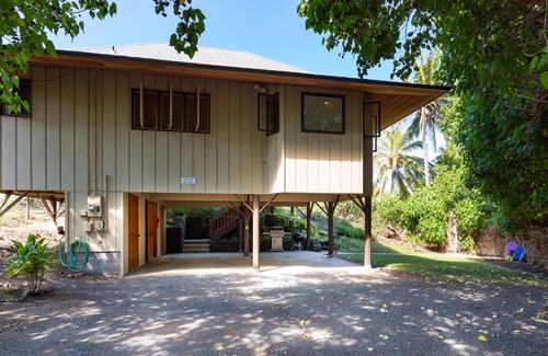 Tucked into lush tropical surroundings just steps from the soft sands of Waialea Bay, Ehu Kai is a charming two-story cottage designed to evoke the feel of a cozy beach treehouse. Surrounded by mature landscaping and flowering trees, this unique retreat offers privacy, tranquility, and an authentic island experience—all just moments from one of the Big Island’s most beloved beaches.