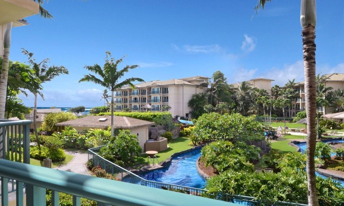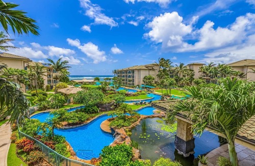 Designated as the most outstanding resort in Hawaii by the parade of homes! The resort features breathtaking beach sunrises, a state of the art lazy river saline pool complete with water slides, water falls, and hot tubs, beautiful landscaping, beach grills and margarita bar.