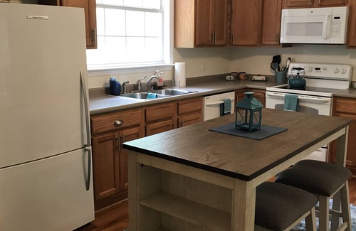Explore the river in a comfortable Old Town canoe (with seat backs and cup holders). The canoe is available to rent from us for a reasonable rate. Or relax at the house in front of a large screen smart tv and watch movies on a rainy day. Grill out or read a book under an umbrella on the back yard deck or walk the wooded neighborhood. Enjoy the private backyard and the colorful perennial flowers and garden spot.