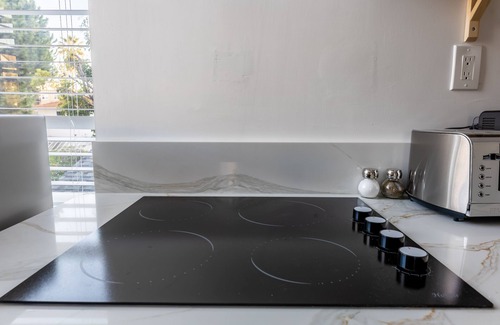 The well-stocked kitchenette blends with the dining area, offering a space to cook and enjoy tasty delicacies with your loved ones before unwinding in comfortable bedroom, boasting 5* comforts that allow you to recharge after a thrilling day of Pasadena sightseeing and activities. Natural sunlight bursts through many windows, making each room shine bright during the day, accenting the carefully picked furniture and enhancing the pleasant setting.