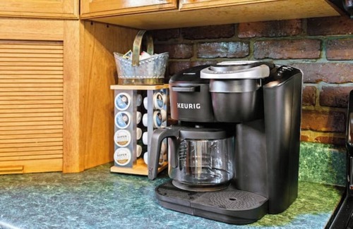 Enjoy a fully stocked kitchen complete with spices & a fully stocked coffee station. We provide a coffee, cream & sugar. The coffee pot is a Keurig with a full pot or single serve capability. Other appliances include: blender, crock pot, toaster. Enjoy the nice eat-in breakfast bar & gas stove.