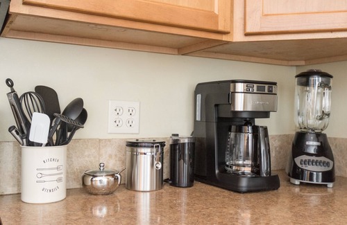 KITCHEN: Fully equipped kitchen with stainless steel appliances, dishwasher, microwave, cooking basics, dishware/flatware, spices, complimentary coffee, creamer, tea and sweetener