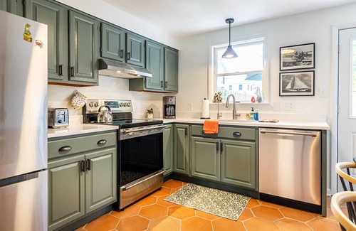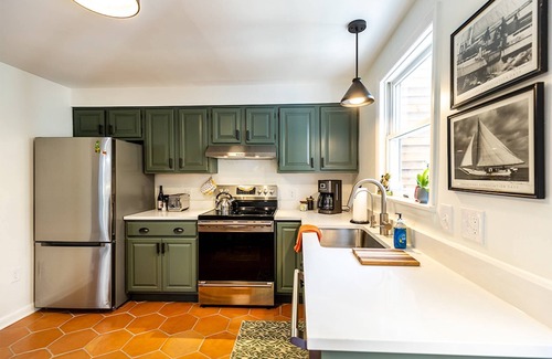 The brand-new full kitchen features all you would need for your stay, from the appliances to the cookware and serving sets for 6 guests. This newly-decorated adorable apartment is perfect for small families and friends coming in for a special Naval Academy or boat show event, or taking in the sights and sounds of downtown Annapolis.