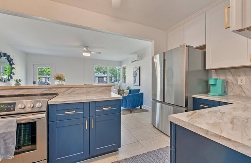 Your family will LOVE this newly renovated home with a coastal vibe in Lake Park Design District. Features 3 bedrooms (with new mattresses), 2 brand new baths and new kitchen, updated and cozy living and family rooms, screened-in lanai and attached carport. This beautiful home has it all, including bikes, beach chairs, umbrellas, linens, towels and more. Just minutes from famous 5th Ave, Old Naples, beaches, fine dining, boutique and antique stores, performing arts, car shows, art fairs, free concerts at Cambier Park and pickle ball and state of the art playground at Fleischman Park. Walk or ride one of the several bikes all over town. Walk to Coastland Center Mall, Gulf Shore Blvd, Naples Pier, the Naples Zoo, Gordon River Greenway: Paved Nature Trail and Baker Park.