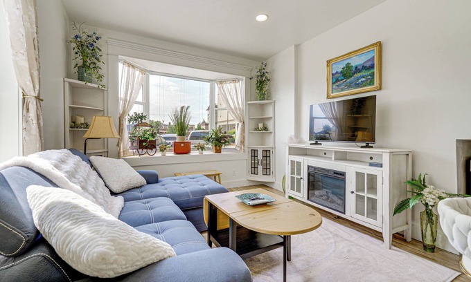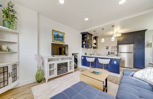 Experience the best of Anacortes from this modern 1-bed, 1-bath vacation rental! With a full kitchen, in-unit laundry, and a prime location in the heart of Historic Downtown, this apartment is ideal for an extended coastal getaway. Hike scenic trails at Deception Pass State Park, peruse the local shops, or ferry to nearby islands. As evening falls, unwind with a glass of wine by the fire.
