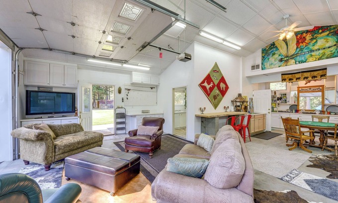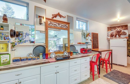Unplug and unwind at ‘Treehouse Lake Lodge’ — an amenity-packed vacation rental studio just down the road from Montana’s Thompson Chain of Lakes. With garage doors that open up for seamless indoor-outdoor living, a private patio with a BBQ grill, and proximity to Kootenai National Forest and fishing spots, this 1.5-bathroom bunkhouse is made for relaxing after a long day of outdoor adventure.