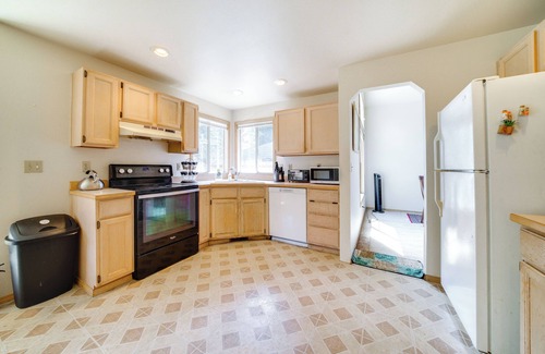 Adventure seekers and nature lovers — your Renton vacation rental awaits! Walk or jog up the wooded hill by the property, unwind along the water at Gene Coulon Memorial Beach Park, or hit the links. As evening falls, prepare a meal in the well-stocked kitchen and dine al fresco while a furry friend roams the backyard. This 4-bedroom, 3-bath home also features a spacious living room, perfect for movie nights!