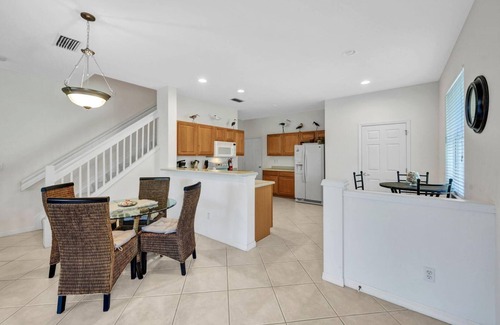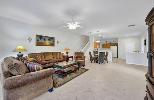 The home itself is a 3 bedroom/2.5 bathroom town home offering over 1,700 square feet of living space so ideal for guests seeking space during their stay. The home is open plan in design with the Family Room, Kitchen and Dining area all in one spacious area. The Family Room also has large tinted sliding doors leading to the private screened lanai with preserve views, thus offering guests plenty of tropical living space to enjoy the wonderful outdoor lifestyle Florida is famous for plus complete privacy when outside.