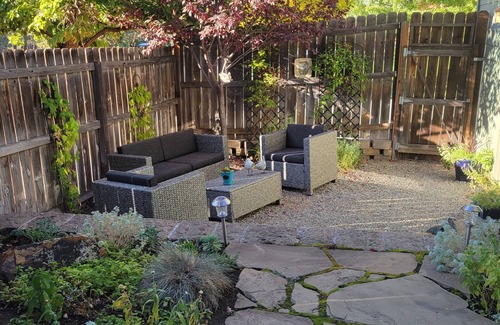 Attractive, light and bright townhome within easy walking distance to Old Mill District and Les Schwab Amphitheater. Spacious one bedroom with queen bed and one and one-half baths that comfortably sleeps two. Beautiful private courtyard area with gas bar-b-que. Fully equipped kitchen; washer/dryer and air conditioned for your comfort. Cable TV and WiFi. City of Bend short term rental permit no. STR-15-0064. Check availability in my other VRBO properties 724609; 710402; 721732; 717766.