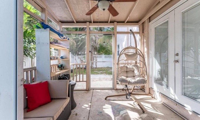 The patio and private backyard have space to enjoy the beautiful Florida sunshine and foliage. We keep some beach amenities on our patio shelf to help enjoy your time here such as an umbrella and some coolers. (Ice packs are available in the freezer). Beach towels are provided in the laundry closet.